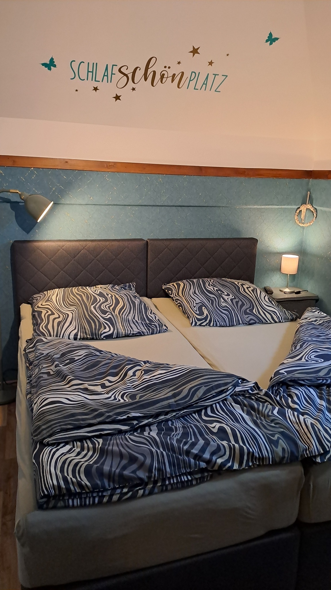 Das Schlafzimmer befindet sich in der unteren Etage, ist mit einem Infarot-HybritHeizkörper und LED TV ausgestattet. Das Zimmer hat ein seperates Bad.